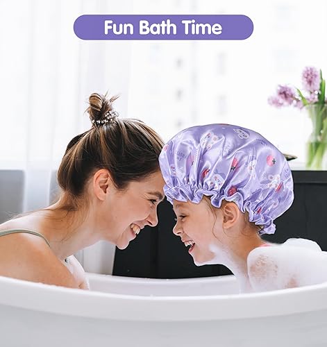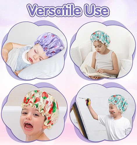 Multi-Purpose Protection - The shower caps for kids waterproof design keeps hair dry during showers, painting, or any activities; Its smooth polyester outer layer and EVA lining provide durable coverage