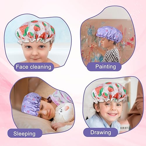 【Practical Purpose】: The reusable waterproof shower cap can be a hair cover for kids in the shower or bathing, and protect the hair in painting or other activities which may let the hair be dirty or wet