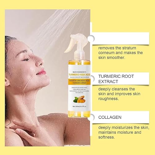 Keratin Care Kojic Acid Turmeric Spray: According to the state of the skin, kojic acid and turmeric exfoliating Spray can balance the water and oil,leaving the skin refreshed and comfortable.