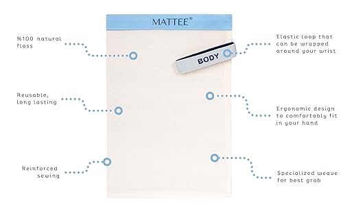 Our exfoliating mitt for body is made up of %100 natural floss, that's a plant-based fabric, also known as viscose or rayon.