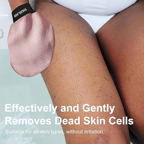 Achieve Glowing Skin: Use the THURLADY exfoliating glove to gently and effectively remove dead skin cells, leaving your skin feeling softer and smoother. It also helps reduce lumps and ingrown hairs, and improves the absorption of skincare products. Suitable for all skin types, without irritation