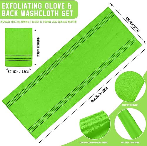 Package Information: you will get 1 long exfoliating back washcloth bath towel and Korean exfoliating mitt; Sufficient quantity will meet your using needs, and you can share them with your family