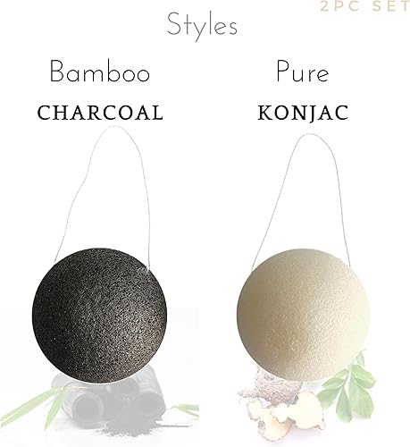 Material: You will receive 2 konjac sponges. 1 activated carbon style, ideal for exfoliating and deep cleansing of the skin, and the other pure konjac. Our sponges are biodegradable, and made with 100% natural materials, chemical free.