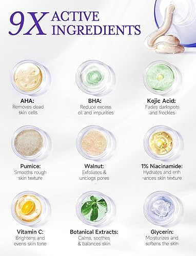 INNER TUBE - BODY SCRUBBER EXFOLIATOR: Features 10% Salicylic Acid, AHAs, Kojic Acid, Lactobionic Acid, and Lactic Acid to gently remove dead skin cells, clear oil, and smooth texture. Enhanced with Walnut Granules, Pumice Particles, and Natural Silica for deeper cleansing and softness