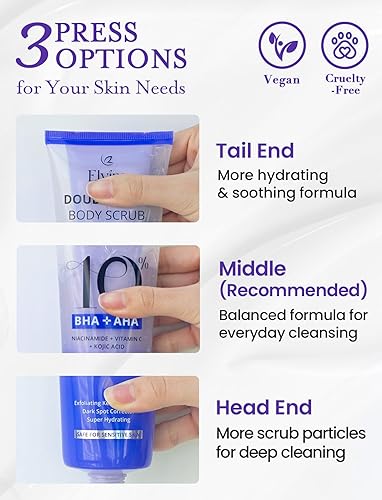 INNOVATIVE DUAL-TUBE DESIGN: Like a facial for your body, our Dual Tube Body Scrub combines chemical and physical exfoliants with antioxidants. It refines dry, rough skin and bumps, giving you radiant results in one use