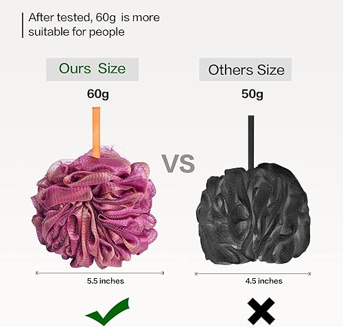 Suitable Size: 60g loofa for women exfoliating is more suitable for using.You can hold and use shower scrubber for body easily, ideal for both parents. We also have multi-color for your choose.It is a nice shower sponge for your family members to use during their bathing.