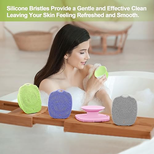 SOFT BRISTLES SCRUBBER: COLGEIFY silicone bath brush body scrubber, the bristles are very soft to the touch and are not abrasive at all, the soft silicone material is gentle but still exfoliates well without being too rough. The silicone body scrubber lathers up well, leaving skin smooth and clean, and fits around curves like knees and elbows with ease