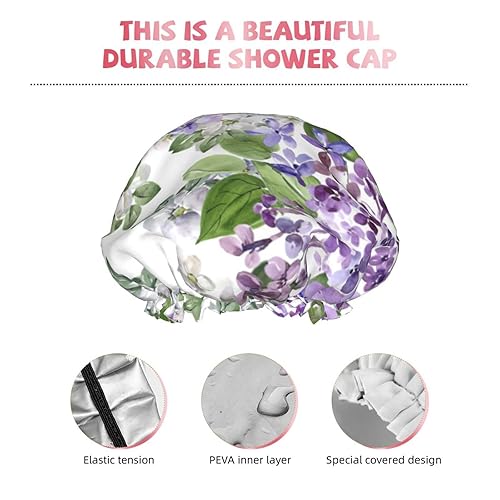 Lilac Shower Cap for Women - Double Waterproof Large Hair