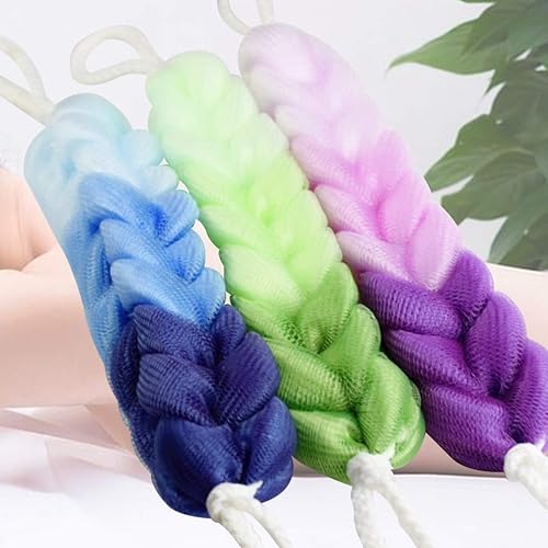 Long Bath Pouf Back Scrubber with Rope Handles 3-Pack