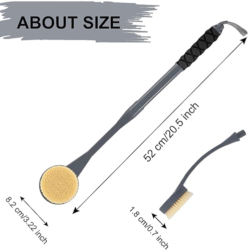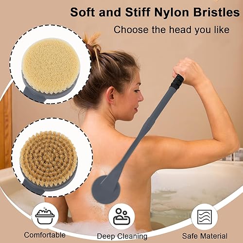 Package Include:The back scrubber contains a long handle, a stiff bristles brush head, and a soft bristles brush head