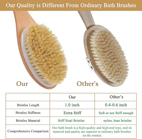 Stiff Bristle Body Scrubber for Shower: It can remove sweat dirt and oil, relax muscles and invigorate blood, improve sleep, improve skin's metabolic function and disease resistance. Professional bath brush fit for women, men and elders.
