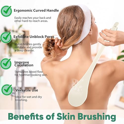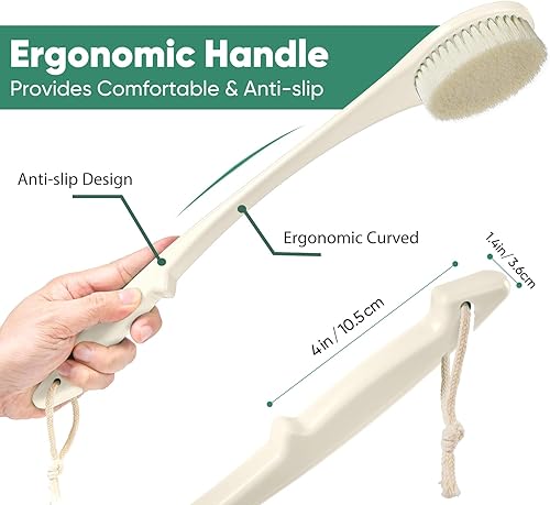 LONG HANDLE, EASY REACH:This back scrubber features a 17-inch handle, making it easy to reach your back and other hard-to-reach areas for a more convenient cleaning experience. Whether it's your back or other tricky spots, the length of the handle ensures effortless cleaning of every detail, enhancing your shower routine