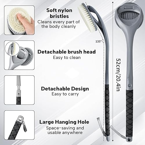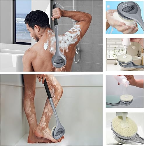 Long Handle Back Scrubber for Shower & Exfoliation (Blue)(Grey)