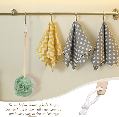 Long handle: designed with a long handle, this sponge mesh pouf shower brush is about 13.67 inches in length, which is long enough to reach your back and feet effortlessly, convenient design for thorough body cleaning and massage; The wood material makes this handle smooth and comfortable to grip, suitable for women, men, the elder to use