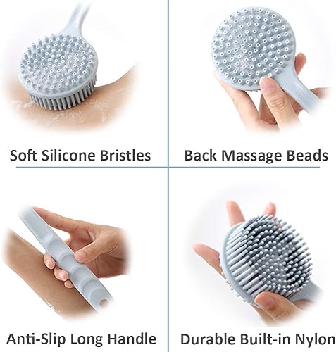 ✓Double-Sided Design Brush: One side with massage beads to promote blood circulation and relax muscles; Another side with soft silicone bristles to deep clean your body without hurting your skin;