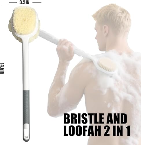 Long Handle for Easy Reach:The non-slip curved handle is about 14 inches long. It’s non-slip and easy to hold. You can easily clean your back and feet.