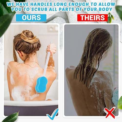 Useful Body Cleaning Tool: the sponge back scrubber helps to get rich foams, which can be applied to brush your back, legs, butt, feet, etc., making your skin smoother after showering, an ideal cleaning accessory in daily life