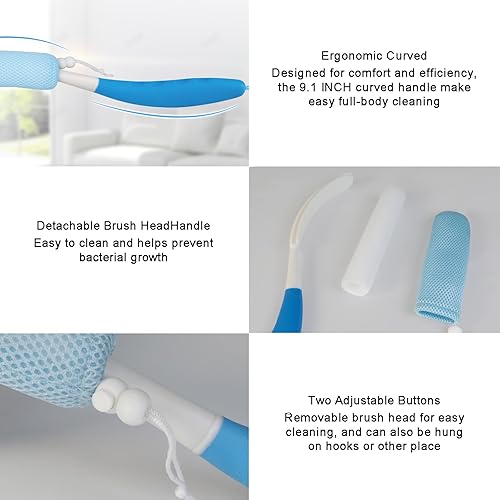 Ergonomic Design: The long handled shower brush is ergonomically designed with a reasonable curve, which helps to clean every part of the body. Non-slip silicone handle for increased grip comfort