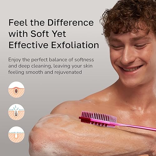 Effortlessly reach every spot with our extra-long handle: Say goodbye to awkward stretches and missed spots! Our 16,8-inch long handle handle offers unbeatable reach, allowing you to clean every inch with ease. Enjoy a thorough, full-body cleanse without the hassle.