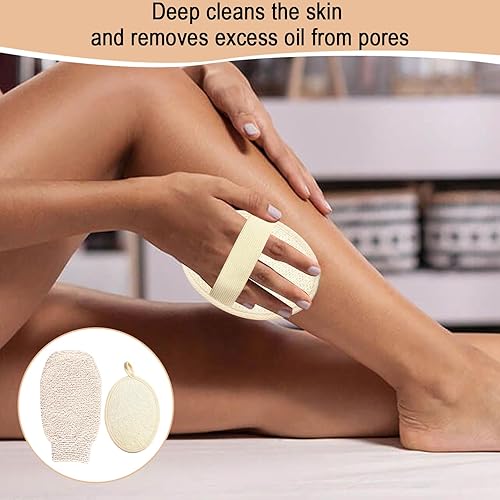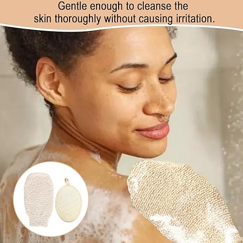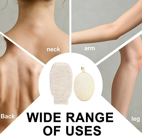 【Bath Gloves For Shower Exfoliating】 Our dual-sided loofah pads feature a natural sponge surface for exfoliating and a soft backing with hand strap for easy control. Perfect for scrubbing arms, legs, and back in the shower or bath.