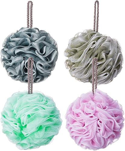 ♥ PACK OF 4 - The shower puff comes in 4 beautiful colors, (Crystal green,Gradient pink,light grey,Psychedelic green),Meet males, females & families color preferences and make it easy to distinguish. You will be in a good mood when you see these lovely colors.