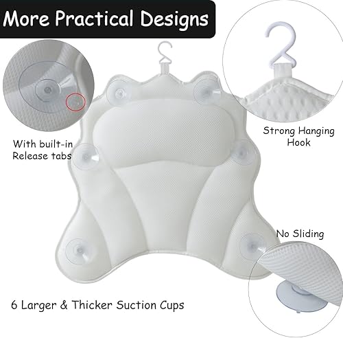 This plus size bathtub pillow is equipped with 6 larger & thicker suction cups to keep it in place.