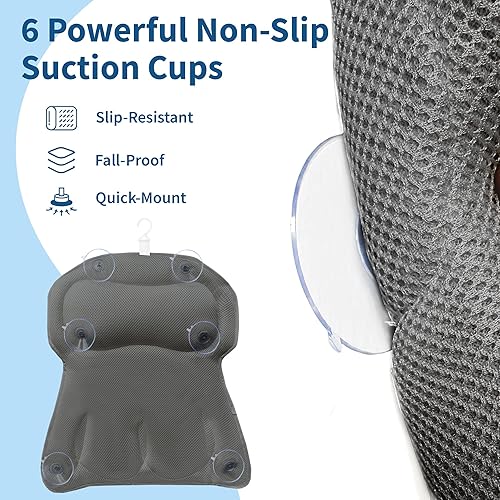 Luxury Bath Pillow - Ultra Soft Headrest with Suction Cups(Grey)