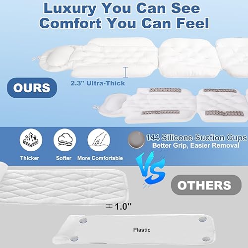 【Different from Traditional Bathtub Pillows】Crafted from premium swimsuit-grade polyester, this full-body bath accessories are ultra-soft, skin-friendly, and insulates effectively against the cold surface of the tub. Its 2.8 inch thick cushioning turns your bath into a cozy, spa-like retreat