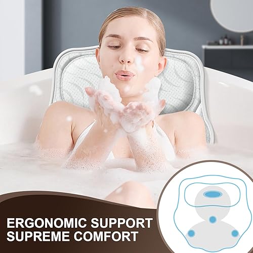 【A truly ergonomic bath pillow】ergonomic custome designed headrest brings head and neck max. comfort and relaxation. Extra thick shoulder and back padding brings shoulder and back max. support and relaxaion.Fits all Bathtub, Spa Tub, Hot Jacuzzi.