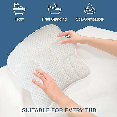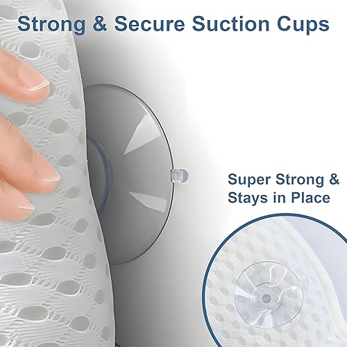 Powerful Non-slip Suction Cups:The bath pillow features 8 extra-large suction cups for strong, slip-free stability.To install, moisten the cups and press firmly onto a smooth, non-textured tub surface. Each suction cup has an easy-lift tab for quick.
