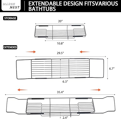 Luxury Expandable Bathtub Tray with Marble Top & Tablet Stand(Black + Jazz White)
