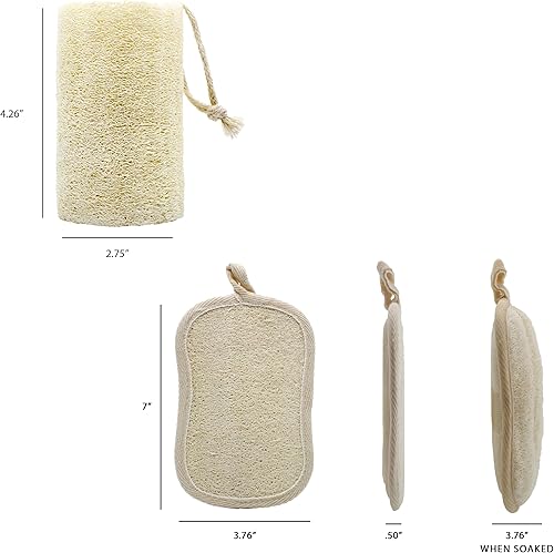 REAL NATURAL LOOFAH PLANT & PAD: Our real loofah plant and dual-sided natural bath sponge expand and soften when wet, ideal for body sponges or shower sponges. This shower loofa is a gentle yet effective exfoliating sponges for body, available in loofah bulk.