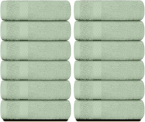 HOTEL COLLECTION - 12-Piece Washcloths are generously Sized at 13x13 inches. Each towel is 100% combed cotton - soft, durable, quick-dry, and wonderfully absorbent. It is more absorbent than any Turkish Cotton Face Towel.