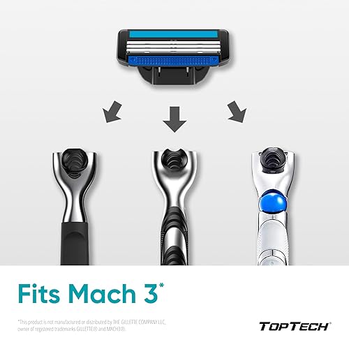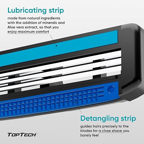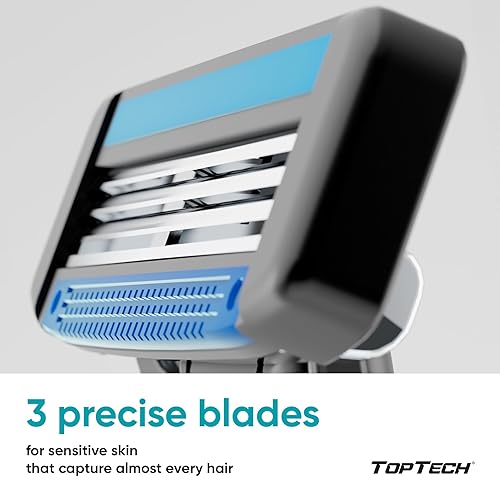 [High Quality Blades]: 3 precise ultra sharp blades for sensitive skin that capture every hair. Optimized blade angle: special blade sharpening angle ensures efficient hair cutting, reducing the need for multiple passes over the skin. Special strips on the cartridge: the pre-shave strip guides hairs precisely to the blades for a smooth shave you'll barely feel. Lubricating strip with natural ingredients and added Aloe Vera. Fits gillette mach 3 blade refill razors for men.