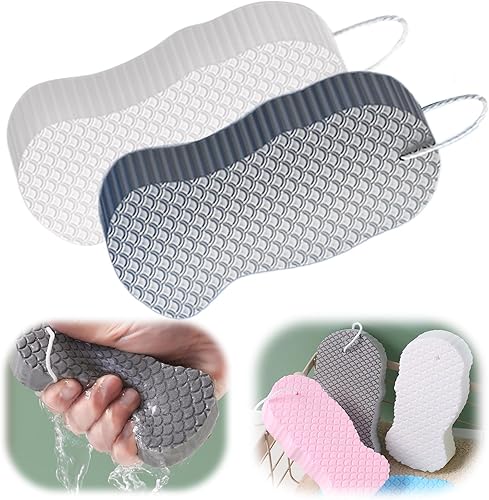 【Reusable & Multicolor Set】Reusable magic bath sponge comes in a multicolor exfoliating bath sponge set. With straightforward instructions, just soak your body, dry off, wash the sponge, and gently rub for deep cleaning and a luxurious bathing experience.