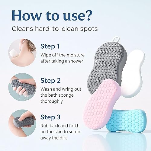 3D Super Soft Design: Our unique 3D surface of the exfoliating bath sponge ensures gentle yet effective cleansing. Enjoy the ultra-soft texture that feels great on your skin while delivering optimal exfoliation, making it an essential addition to your bathing routine