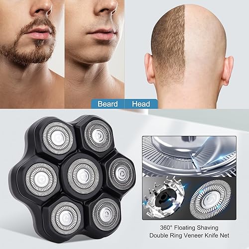 NEW Upgrade: 7D blade heads with the innovative design of electric razor for men is more flexible and better to fit the contours of the face and head. The design of shavers for men,Have a larger contact area, fasting shaving experience
