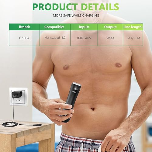 Charger Compatible with MANSCAPED Electric Groin Hair Trimmer, Manscaped The Lawn Mower 3.0/2.0 replacement charger cord