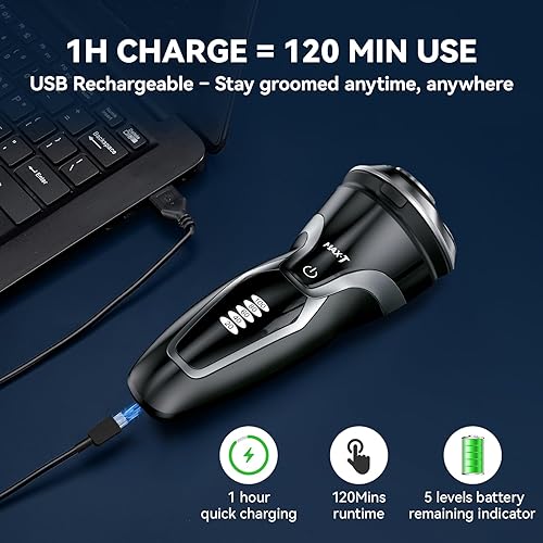 Men's Electric Razor: 2 Floating Blades, LED Display, Wet/Dry