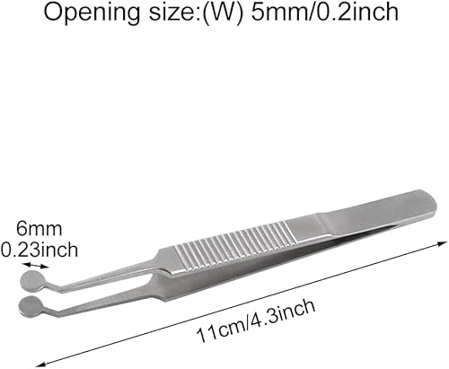 【SIZE INFORMATION】Each stainless steel tweezers is about 11cm/4.3inch long, and the open is 5mm/0.2inch, the round tip is 6mm/0.23inch in diameter.