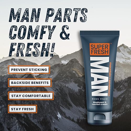 FRESHNESS WHERE IT COUNTS EVERY DAY: Designed specifically for male hygiene needs, this lotion targets problem areas like the groin, inner thighs, backside, and even feet. Whether you’re suiting up for work, gearing up for sports, or heading outdoors, Super Fresh Man Parts provides reliable freshness and dryness. Proudly formulated, filled, and sealed in the USA to ensure premium quality in every tube.