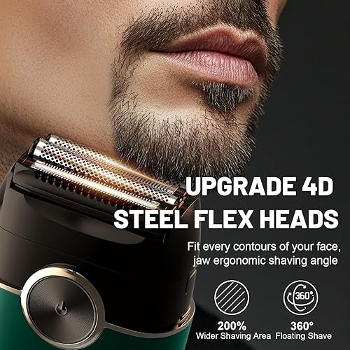 Men's Electric Foil Shaver: 4D Floating Blades, LED Display(Green)