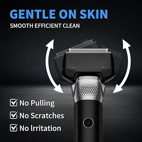5-blade Floating Electric Foil Shaver: The innovative 5-blade floating foil shaving system is crafted to perfectly fit the contours of your facial and neck areas, providing a smooth and comfortable shaving experience. Stainless steel cutting heads avoiding spots and irritation,which can meet the skin-friendly shaving needs at home