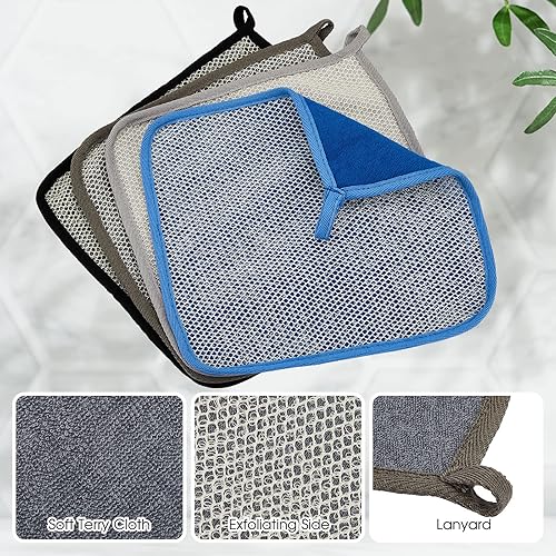 Convenient to Hang: the exfoliating washcloths for body with a small loop that can be hung on the wall to save space and dry easily, convenient to fetch, keep your home clean and tidy, bringing you a nice using experience