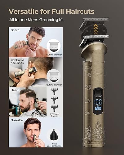 Professional Grooming Kit: This Mens Grooming Kit and Hair Trimmer can handle all your grooming needs. It includes a hair clipper with 11 guide combs(1.5mm, 3mm, 4.5mm, 6mm, 9mm, 12mm, 15mm, 19mm, 22mm & left/right ear taper) , a Zero Gapped T-blade trimmer (nose/ear trimmer, beard trimmer, 3 guide combs), a double-blade foil shaver with a transparent hygiene cap, 10 ml blade oil, blade cleansing brush and even a barber cape. Whether you're maintaining your beard, fading your haircut, manscaping, or all of the above, this grooming kit for men can handle it.
