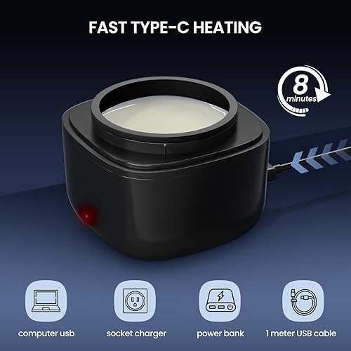 Rapid Type-C Heating: Achieve full melt in just 8 minutes with 10g of crafting wax beans, thanks to the efficient Type-C USB system compatible with computers, power banks, and wall outlets