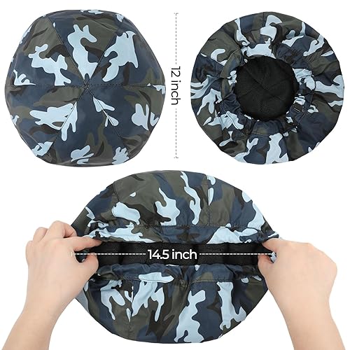 Men's Reversible Shower Cap - Large Waterproof Terry Lining(Blue&Black Camouflage)