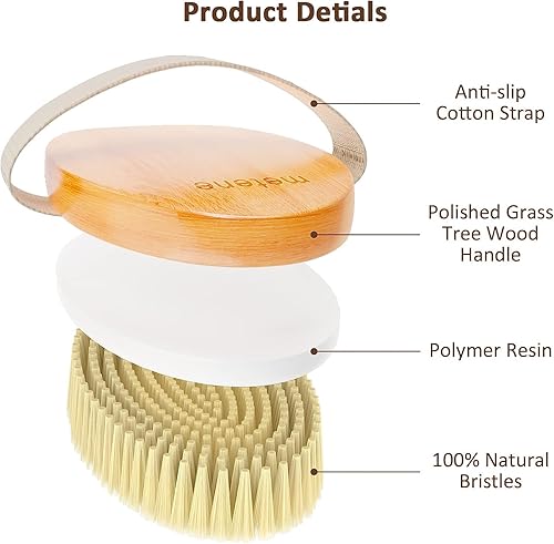 WET AND DRY BATH BRUSH: Stiff brush and soft brush can be used in a dry or wet shower. When it is dry, it is good for exfoliating, unclogging pores, and massaging your body and skin. When used in wet, it becomes soft after being washed with hot water and is suitable for cleaning the body.