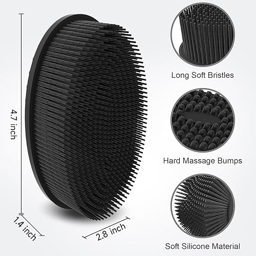 2 in 1 Silicone Body Scrubber: One side is a soft, long-bristled brush surface that makes it easy for you to clean all parts of your body. The other side has a scrubbing surface that helps you massage your head and skin joints. 4.7" x 2.8" x 1.14", It is the best choice for bathing and cleaning.