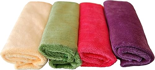 Machine-Washable Micro Fiber Towel with Hanging Loop - Each set gives you 4 microfiber cleaning towels in varied colors & with hanging loops for easy storage. To clean the micro fiber towels, toss them in the washing machine with only mild detergent - no fabric softener & bleach. Tumble dry low or air dry.